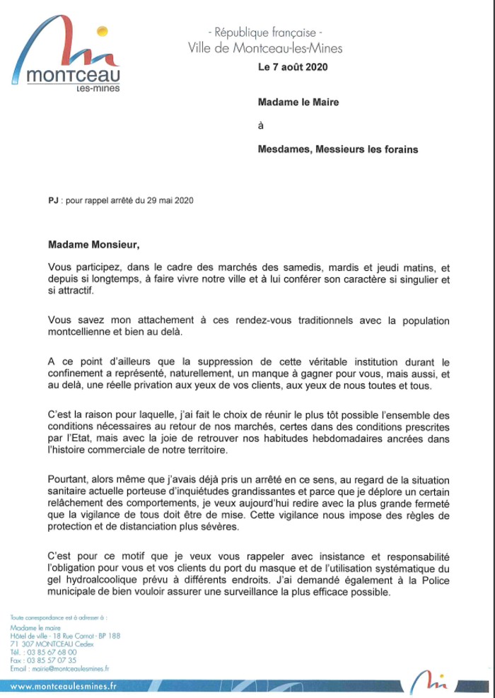Sans oublier de préciser que le port du masque est obligatoire de même que les « distances de sécurité » sont à respecter.
