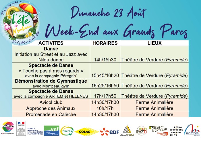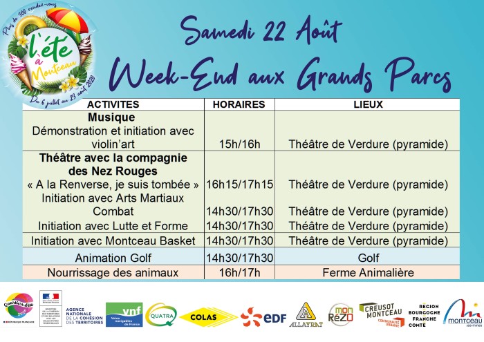 Voici le programme du prochain week-end du samedi 22 et 23 août 2020