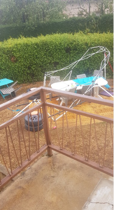 Voici les dégâts suite aux orages,grêles,vent très violents dans mon jardin à saint Vallier,rue Anatole France.