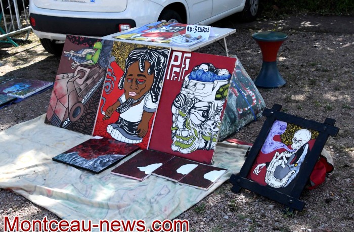 Vannerie, bijoux, coutures, papiers, maroquinerie, disques, objets divers, peintures, dessins,… un éventail varié d’exposants pour un public timide.