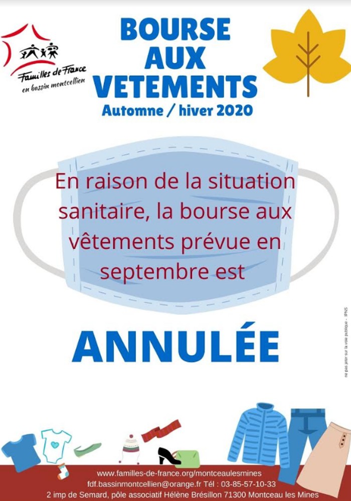 L’association Familles de France en bassin montcellien se voit dans l’obligation d’annuler sa traditionnelle bourse aux vêtements de septembre.
