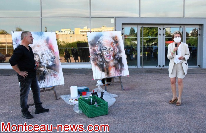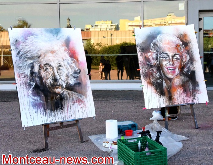 À 18h30, Corado Boust a clos cette édition en réalisant une performance au cours de laquelle il a révélé les visages de Marilyn Monroe et Albert Einstein.