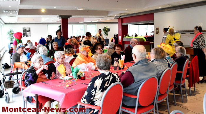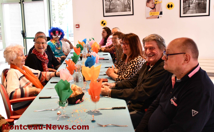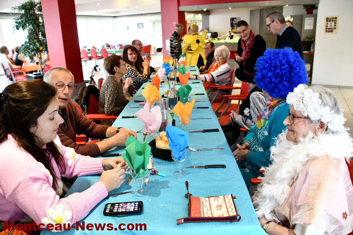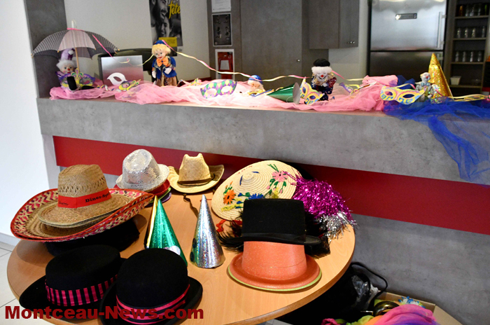 L’animatrice Françoise, accompagnée de l’équipe de bénévoles et du personnel, avait tout prévu : une belle décoration des tables et pour les résidents non costumés chapeaux, perruques, et autres accessoires de circonstance pour se mettre dans l’ambiance de Carnaval.