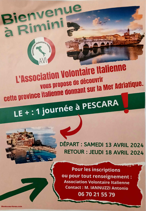 D’autre part, il reste des places pour le voyage en Italie à Rimini. Inscriptions au 06 70 21 55 79
