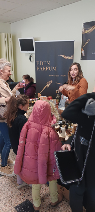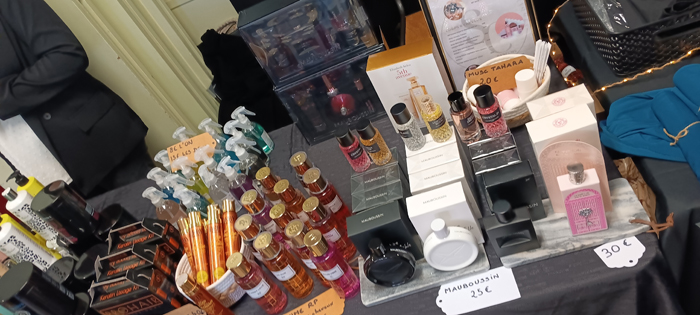 vente d’épices, traiteur, pâtisseries, vêtements, produits cosmétiques, parfums, savons, bijoux, associations caritatives, …