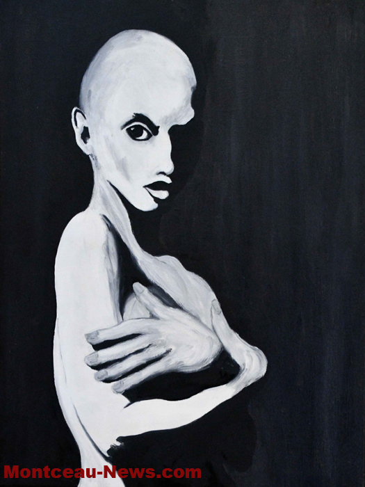 Elise shoot the life réalise ses peinture à l’acrylique en noir et blanc. « Il faut que ça se fasse vite. Je suis dans l’adrénaline du moment dans le but de susciter une émotion. Mais après, ça ne m’appartient plus. »