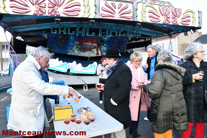 Après la coupure du ruban, le groupe a fait le tour des métiers pour saluer les forains et ont terminé leur périple en partageant le verre de la convivialité.