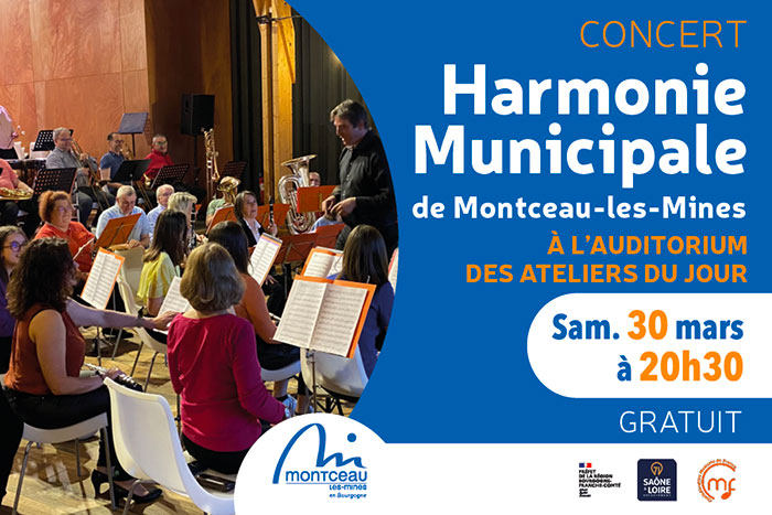 L’Harmonie municipale donnera un concert ce samedi 30 mars à 20h 30 à l’auditorium des ateliers du Jour sous la direction de Vincent Dumangin.
