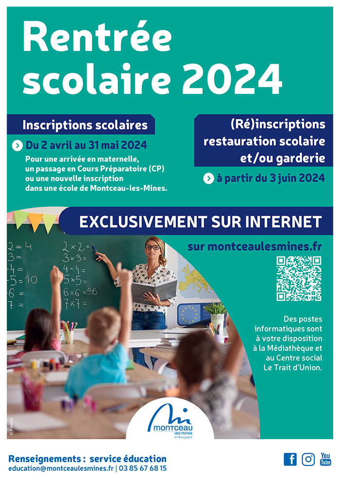 Toutes les informations sont consultables sur le site de la Ville montceaulesmines.fr dans la rubrique Mes démarches/Inscriptions/Inscription scolaires et périscolaires.