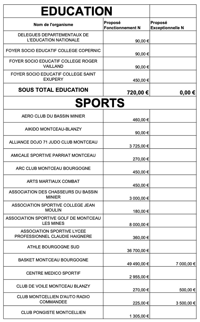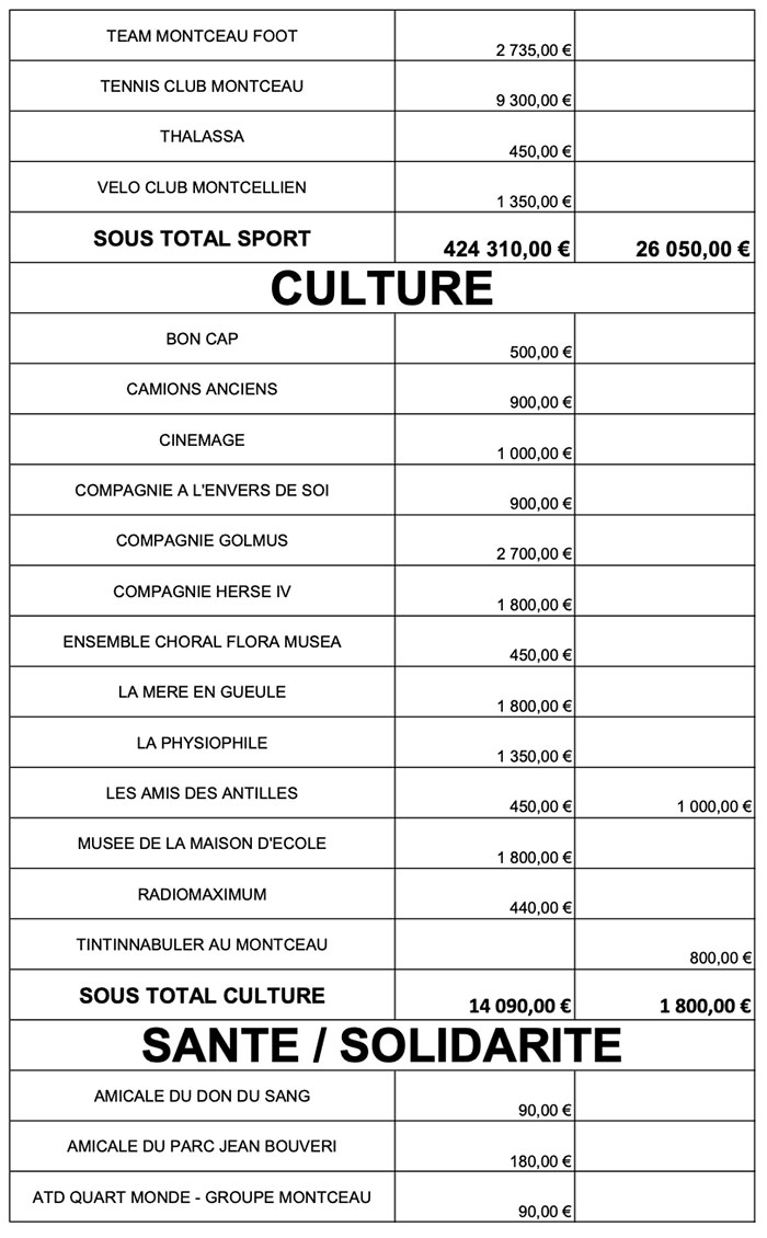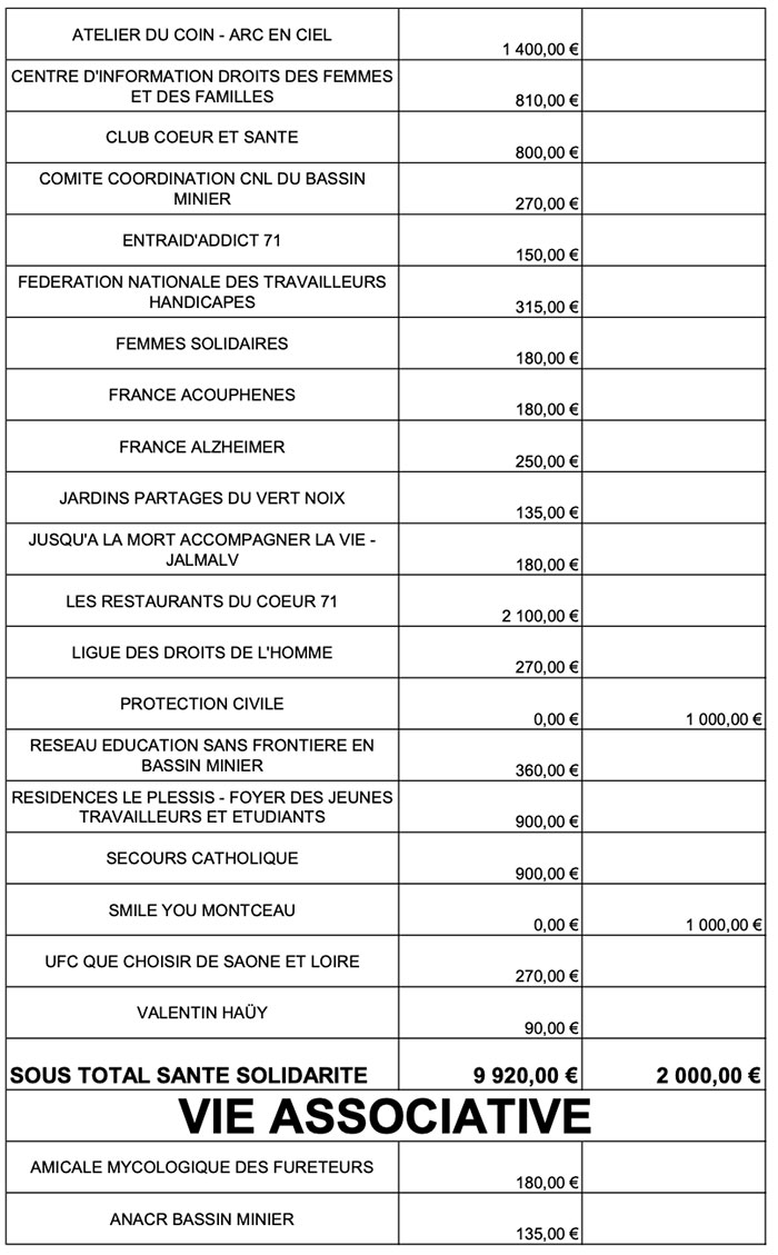 Ce mardi soir le conseil municipal a voté les subventions aux associations, dont vous trouverez le détail ci-dessous.