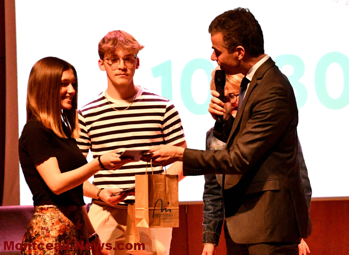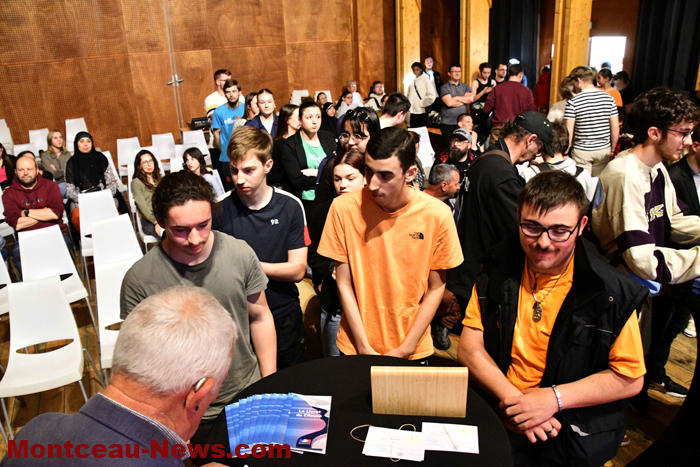 M.C Jarrot et Louis Largueritte ont remis leur carte aux plus jeunes futures électeurs : Adrien Monnot et Anouk Després avant que la distribution se poursuive pour les nombreux participants qui se sont vus remettre un livret explicatif, une place de cinéma et un entrée pour l’Embarcadère.