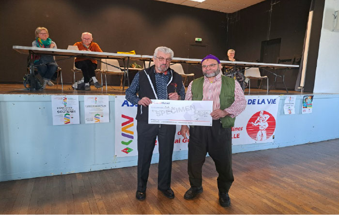 Les membres ont ensuite remis un chèque de 1000€ à M. ATTIA Abdelaziz. Cette somme couvrira en partie l’achat d’un véhicule aménagé pour son fils handicapé de naissance.