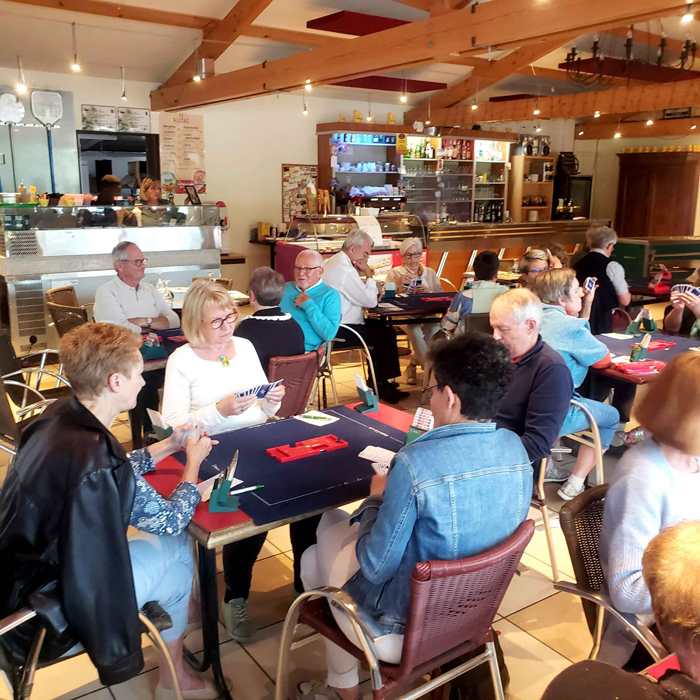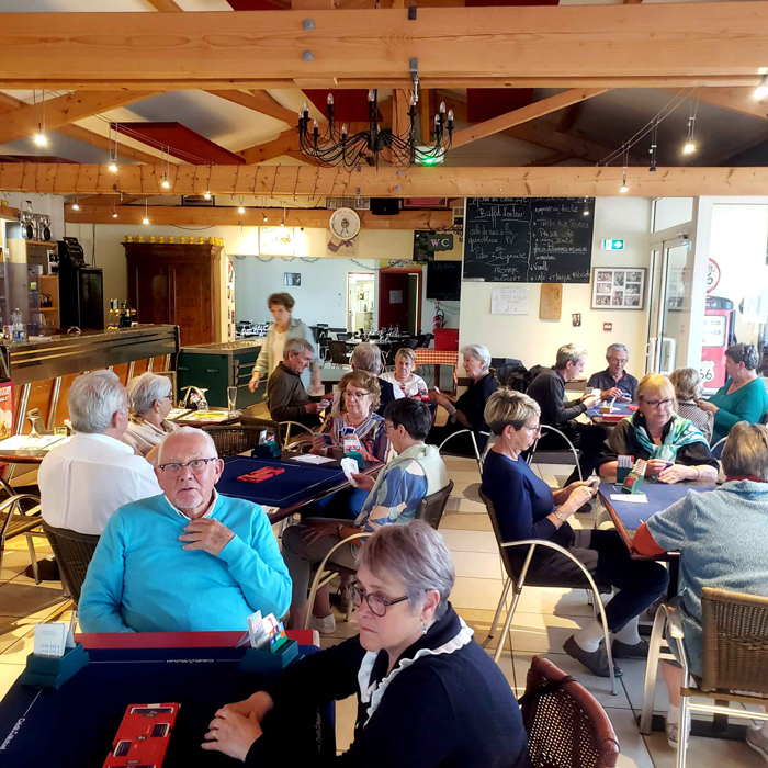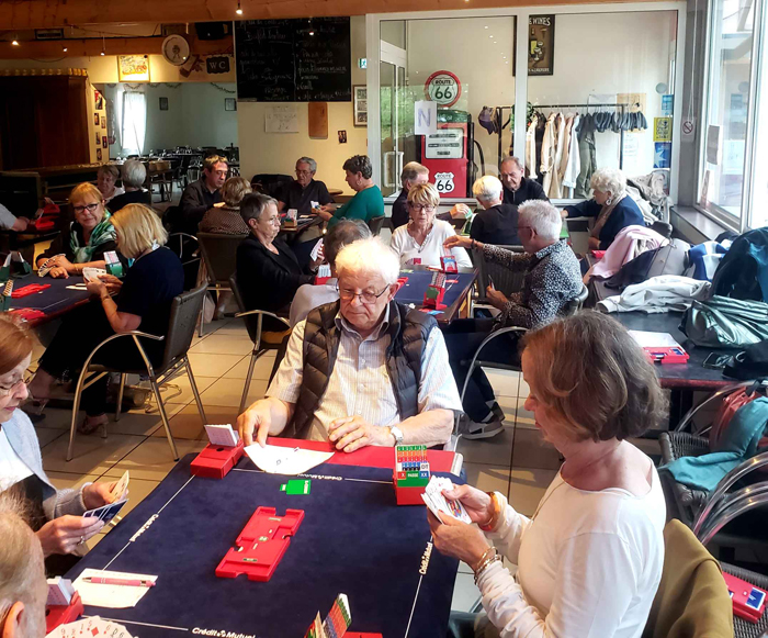 Après le repas de midi, durant lequel 48 personnes ont pu apprécier le repas servi par le personnel de la Fiesta, ce fut autour de Bernard Badet et André Basset, responsables du tournoi, d’inviter les joueurs à prendre leur place autour des tables de jeu pour le tournoi de l’après midi.