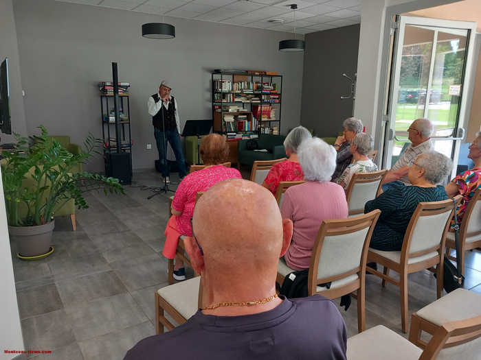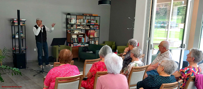 Dans le cadre de la Fête de la Musique, Alain Simon a fait une intervention musicale à la résidence seniors de Montceau-les-Mines, quartier Salengro, ce mardi 25 juin : une prestation en duo avec Marie-Claude Durand pour des lecture de textes poétiques pour illustrer différentes chansons.