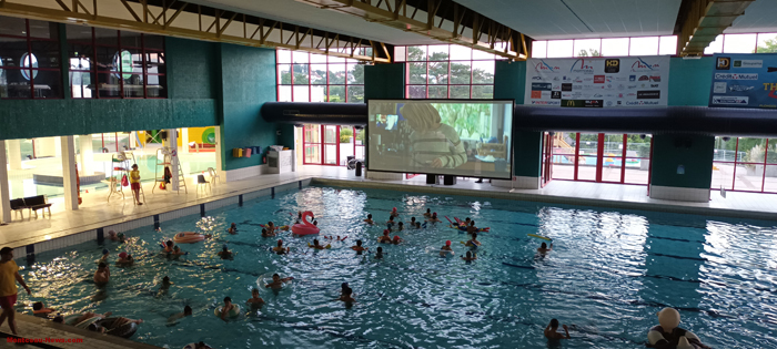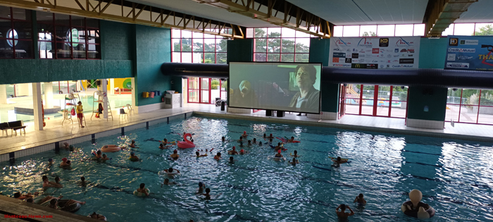 Pour un euro, l’accès au film était possible. Soit en maillot de bain pour voir le film dans l’eau, soit sur les transats, mais en maillot de bain ou encore sur les gradins si vous n’aviez pas votre maillot de bain !