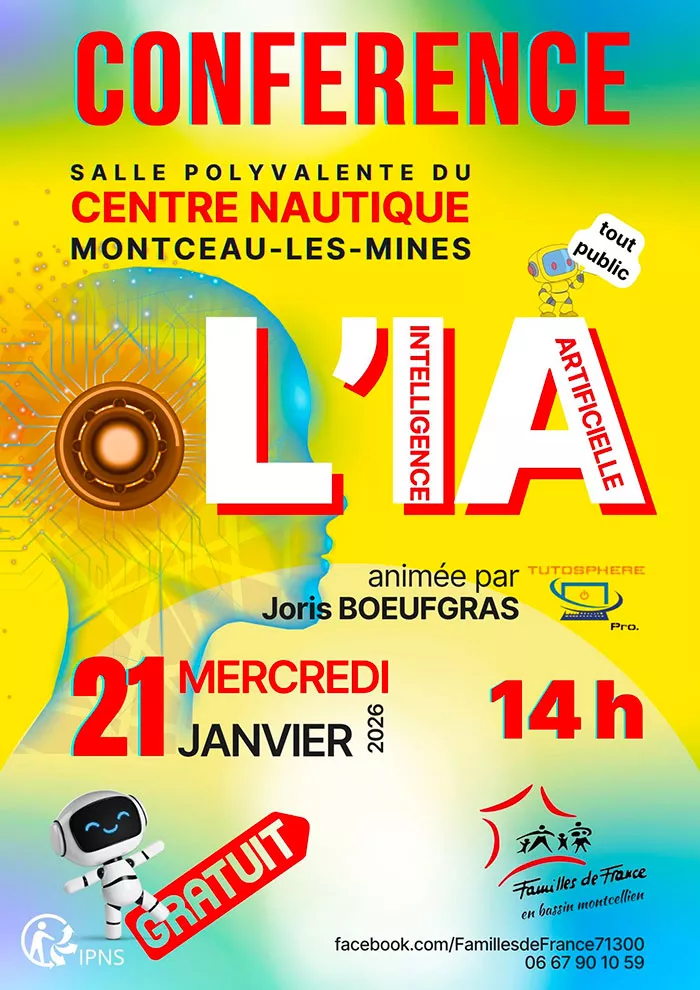 Dans cette dynamique, nous avons le plaisir de vous annoncer une conférence sur l’intelligence artificielle, ses enjeux et ses impacts sur notre quotidien, qui se tiendra le mercredi 21 janvier à 14 h, salle polyvalente du Centre nautique de Montceau.