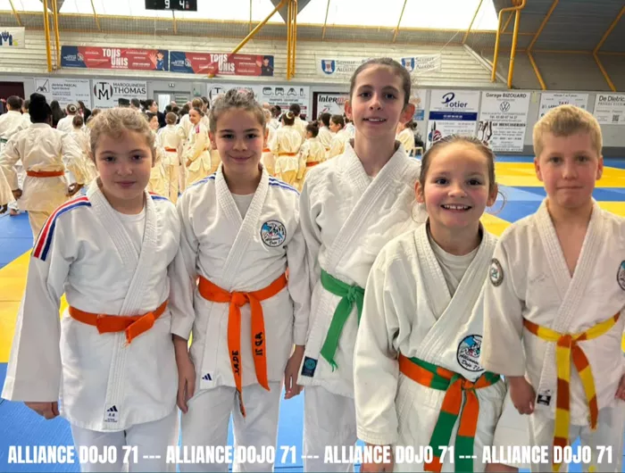 Un groupe compétiteurs de l'Alliance Dojo 71 en construction lors des championnats de ce week-end