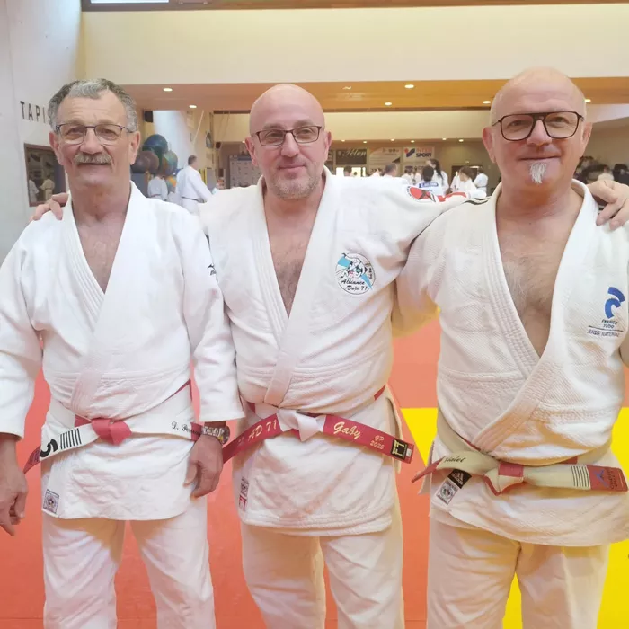 C’était l’occasion lors de cet examen d’immortaliser une photo avec 2 judokas Denis Perreau 7eme dan et Philippe Vialet 6eme dan sans oublier Philippe Thomas 7eme dan (photo prise à Paris lors de la remise du grade) et Patrick Vial 9eme dan ( pas de photo) qui l’ont aidé pour sa préparation au 6eme dan.