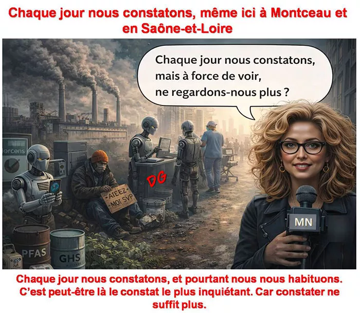 À Montceau comme ailleurs, il devient nécessaire de comprendre, de débattre, d’agir. Il devient nécessaire de redonner du sens, du temps, de l’humain. Et de refuser que l’évidence s’impose sans discussion.