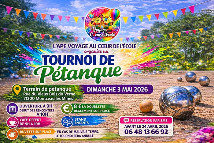 Pour marquer le début de son engagement, l’association organise sa toute première manifestation : un tournoi de pétanque qui se tiendra le 3 mai 2026. Cet événement se veut à la fois festif et accessible, permettant aux parents, habitants et amateurs de pétanque de se retrouver dans une ambiance chaleureuse.