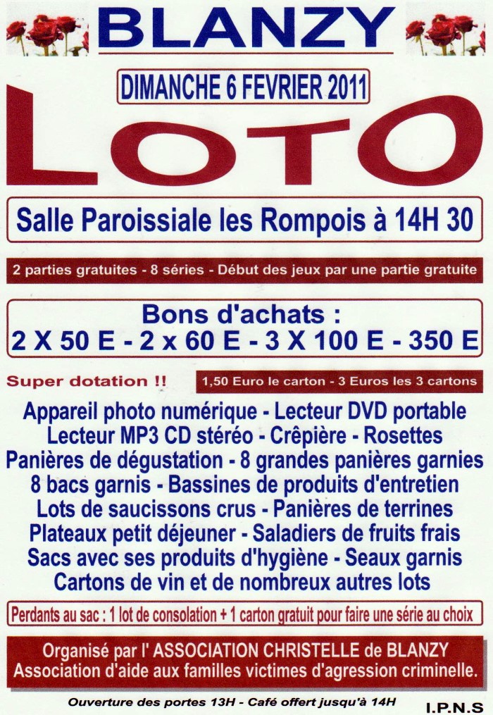 L’Association Christelle de Blanzy organise un loto