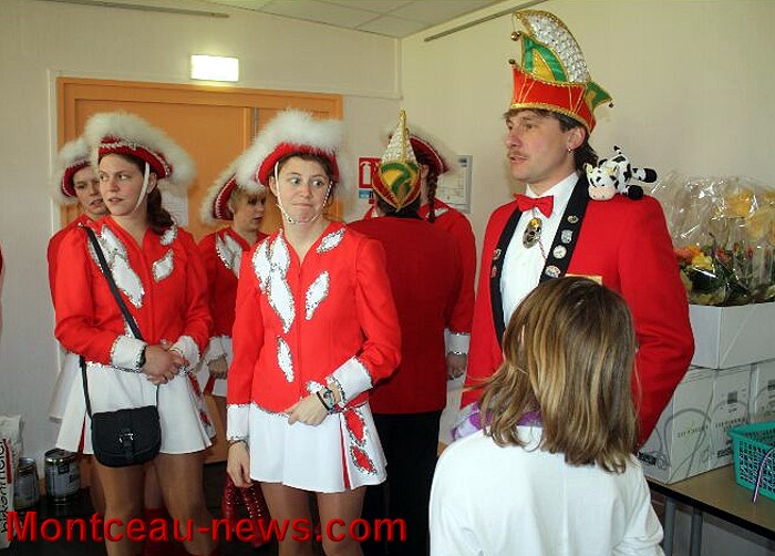 Bernard Tremeau, Président du Comité de jumelage blanzynois, prit la parole ensuite, tantôt en français, tantôt en Allemand pour ironiser sur le temps, pour constater que tout de même, cette année il faisait beau et pour espérer que cela serait de même dimanche pour le public et les 850 « défilants » (musiques, chars, majorettes, groupes etc…). Il remerciait les familles d’accueil qui reçoivent les 54 Allemands présents cette année, le Comité des fêtes, ses Amis allemands et tous ceux qui ont participé à la construction de la manifestation, il félicitait les 2 couples princiers et souhaitait une grande réussite au Carnaval, en rappelant que dans 3 mois se fêterait le 35ème anniversaire du jumelage.