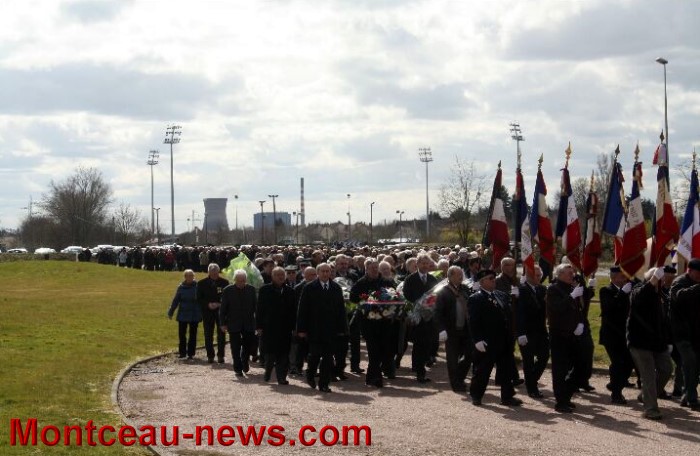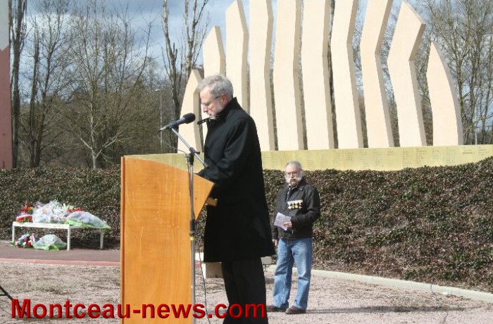 Autour de Robert Létang, Président de l’Association du Mémorial, on reconnaissait Yves Andrieux, Directeur départemental des Anciens Combattants, les Députés Philippe Baumel et Thomas Thévenoud, le Président de la CCM, Jean Claude Lagrange, Didier Mathus, Maire de Montceau les mines, Guy Emorine, Maire de Blanzy, Alain Philibert, Maire de St Vallier, Jean Yves Vernochet, Maire de Montchanin, Jean Paul Luard, Maire des Bizots, Laurent Selvez, Conseiller Général et adjoint au Maire De Montceau les mines et de nombreux élus et représentants d’associations d’Anciens Combattants dont les différentes sections de la FNACA.