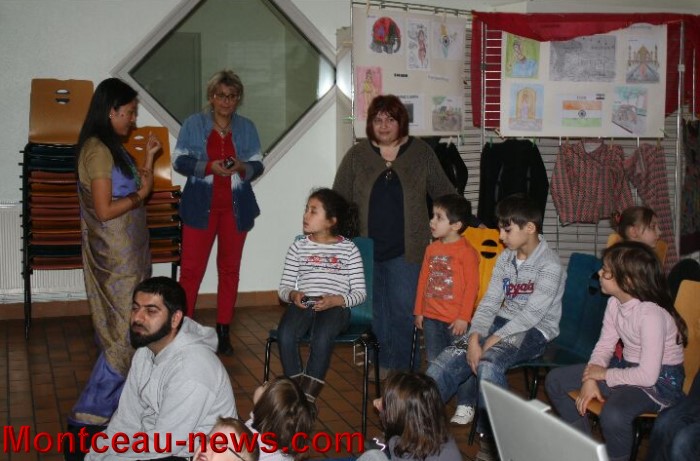 Sumita, originaire d’Inde et habitant en France depuis 13 ans a servi de guide pendant 2 heures aux petits Blanzynois mais aussi aux élus municipaux , associatifs et au personnel du centre social qui étaient présents.