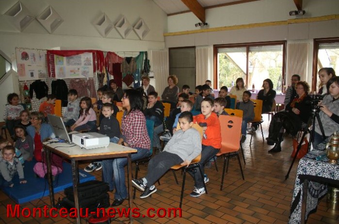 Après un diaporama qui expliquait aux enfants le travail de la culture du thé avec sa plantation, sa cueillette, son séchage, son tri; Ce travail difficile est exécuté par des femmes. Ils ont pu découvrir aussi le village, avec ses échoppes insolites, ses habitants, les costumes traditionnels et les animaux peuplant les forêts.