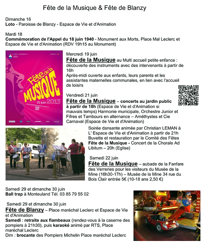 A venir : Fête de la musique, fête de la ville etc.