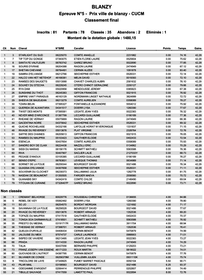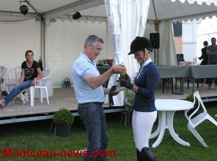 – Epreuve n°5 : PRIX de la Ville de Blanzy (Préparatoire – 1m20, sans chrono, sans barrage), remporté par Annaelle Comte sur Starlight, les prix ont été remis par Guy Emorine pour la ville de Blanzy.