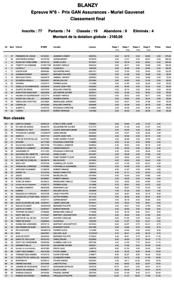 – Epreuve n°6 : PRIX GAN Assurances (PRO3 Grand Prix – 1m25), épreuve remportée par Florent Jeannin sur Première de Cœur. Les prix ont été remis par Muriel Gauvenet, agent Gan à Chalon sur Saône.
