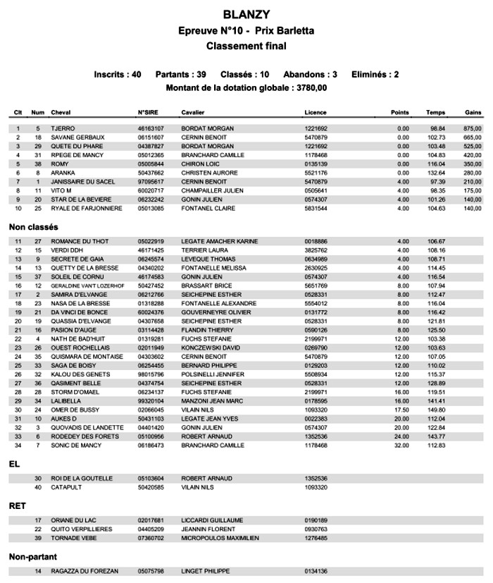 – Epreuve n°10 : PRIX Barletta (PRO3 Vitesse – 1m25, EPREUVE DERBY AU BAREME A), belle victoire de Morgan Bordat sur Tjerro