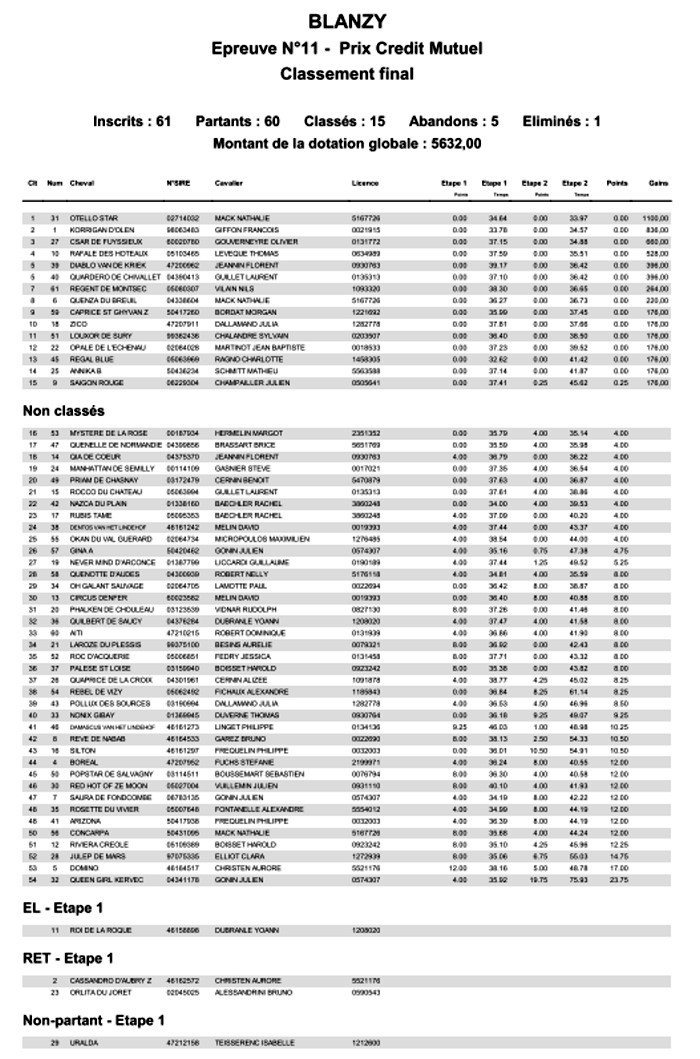 – Epreuve n°11 : PRIX Crédit Mutuel (PRO 1 Grand Prix – 1m40, Barème A, à temps différé) , épreuve remportée par Nathalie
