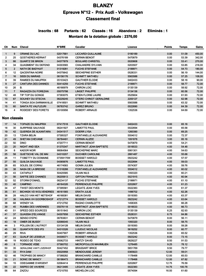 – Epreuve n°12 : PRIX Audi – Volkswagen (PRO 3 Vitesse – 1m25). L’épreuve a été remportée par Guillaume Liccardi sur Oriane du Lac.