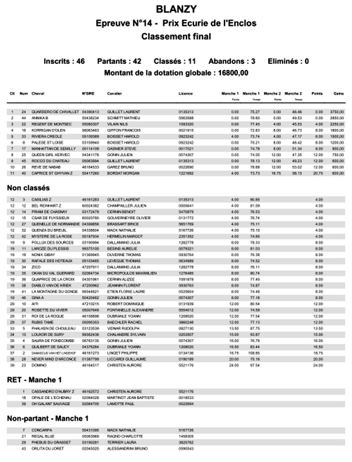 – Epreuve n°14 : PRIX de L’Ecurie de l’Enclos (PRO 1 Grand Prix – 1m45, belle victoire de Laurent Guillet sur Quardero de Chivallet