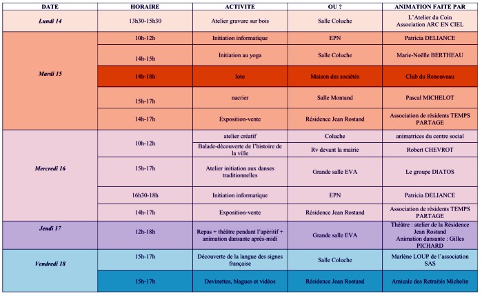 Danièle Sangiorgio, adjointe à la vie sociale, rappelait que la semaine bleue dont le thème cette année est « vieillir et agir ensemble » avait commencé dès ce jour avec un atelier de gravure sur bois par l’Atelier du coin, Association Arc en ciel et déroulait ensuite le programme complet de la semaine que vous trouverez ci-joint.