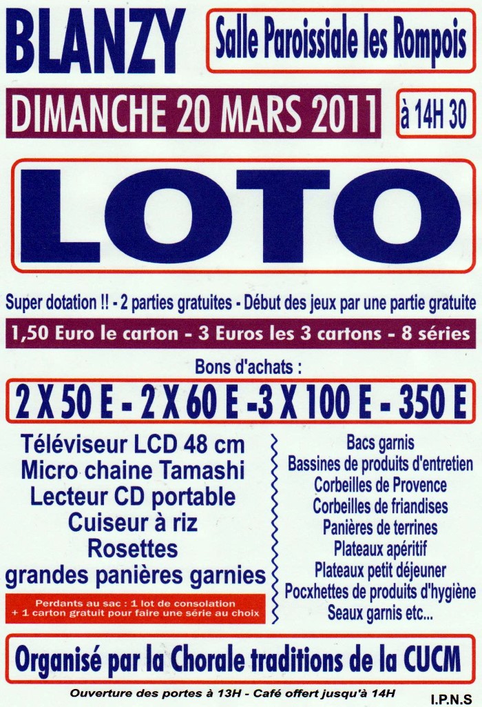 Loto dimanche 20 mars 2011 à Blanzy