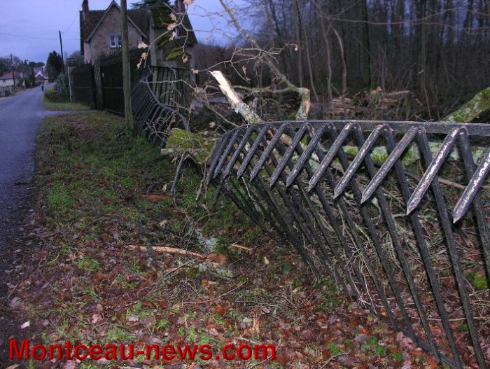 La grille n’a pas résisté et est vraiment endommagée. Un riverain, a coupé la branche qui empiétait sur la chaussée.