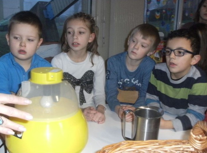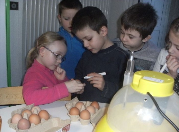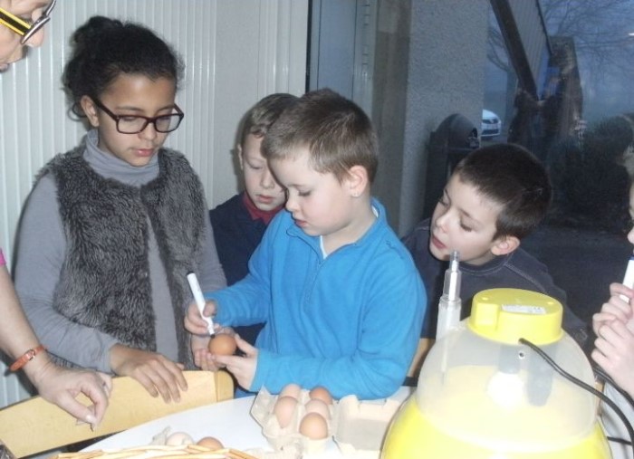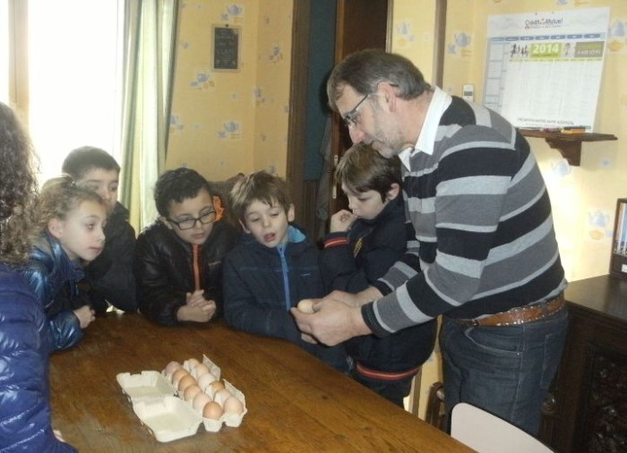 Ce mercredi, une visite chez Mr Clair, agriculteur à Blanzy, pour acheter des œœœufs qui seront mis en incubation pour permettre aux enfants d’assister à la naissance des poussins.Au cours de cette visite, Mr Clair s’est gentiment prêté au jeu de questions des enfants.Après la visite chez Mr et Mme Odde en novembre,cette rencontre a permis aux enfants de découvrir une autre facette du monde agricole.