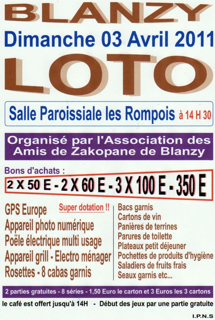 Loto ce dimanche 3 avril 2011 à la salle paroissiale Les Rompois