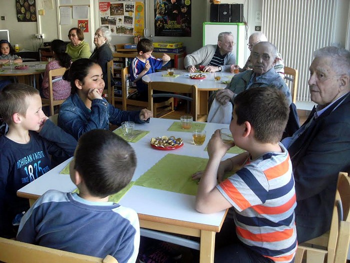 Au fil de ces rencontres de véritables liens se sont créés et c’est tout naturellement que les enfants ont accueillis les résidents et ont formés les groupe de jeux. Après un goûter partagé aux senteurs de Pâques, réunissant les résidents, les enfants, et le personnel des deux structures,un résident, qui a passé sont enfance à Blanzy a partagé ses souvenirs et sa vision de l’évolution de la ville aux les enfants et au personnel.