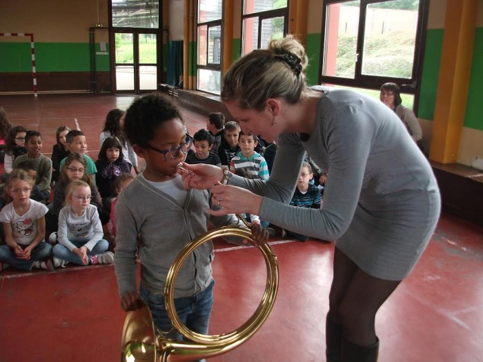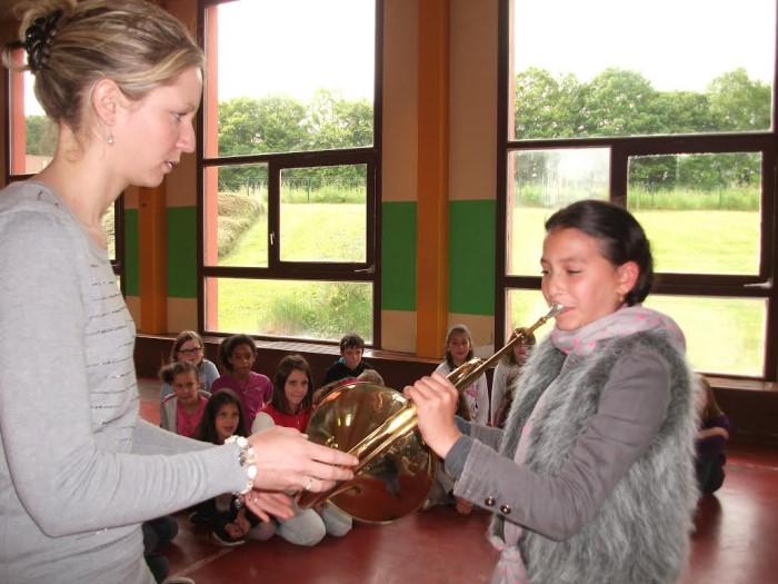 C’est ainsi que Céline Morin a présenté le clairon, la trompette naturelle et le cor naturel en jouant « Je l’aime à mourir » de Francis Cabrel (reprise par Shakira!) tandis qu’Odile Creuzet présentait les percussions et l’euphonium en jouant « Sirens call » des Cats on trees.