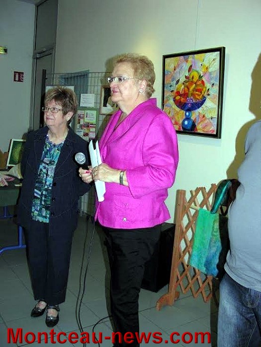 Alice Moreau, dans son allocution présentait son association fondée en 1997, forte d’une soixantaine de membres, artistes peintres ou artisans d’art, association dont le but est d’encourager et servir le développement des beaux arts et de l’artisanat dans toutes ses manifestations. Elle remerciait ses partenaires, les municipalités du Bassin Minier, M. Girardon, ses adhérents et rendit hommage à Josiane Rougemont qui nous a quitté récemment. Elle dit que « Décolys » dont les finances sont saines n’est pas subventionnée. Elle dit aussi que la tradition était respectée puisque l’association met en jeu par tirage au sort (achat du catalogue à 2€) une œuvre offerte par Marie Thérèse BOLLETOT.