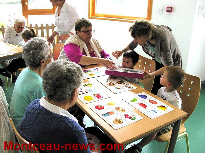 Ce mardi après midi avait lieu à la Maison Marie Pape-Carpantier de Blanzy une bien sympathique rencontre intergénérationnelle entre des petits enfants amenées par les animatrices du Relais Intercommunal « la Coccinelle » et des personnes âgées de la Résidence Jean Rostand accompagnées de leur Animatrice Thérèse Michel.