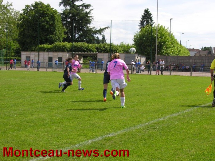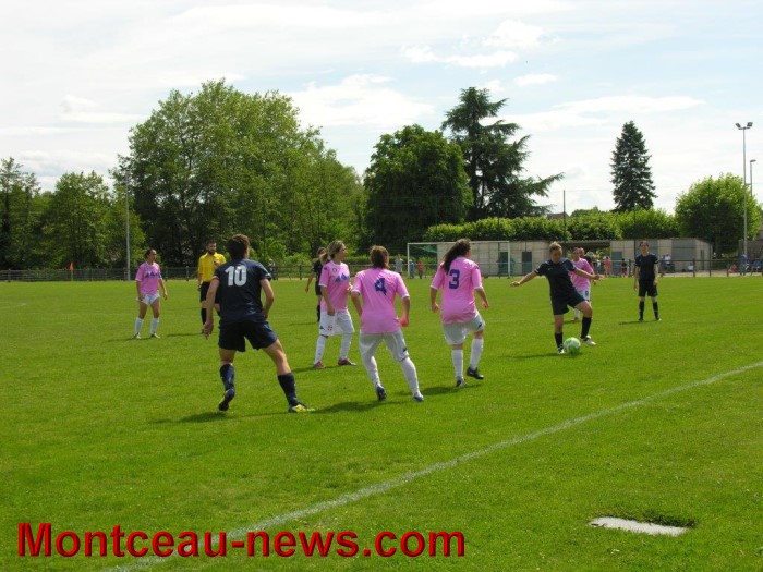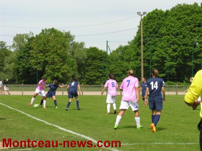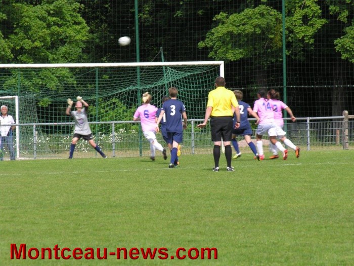 En seconde période, le jeu s’équilibrait, avec une légère domination des visiteuses, les 2 équipes qui se sont données à fond souffraient de la chaleur et la libération vint d’un superbe but à la 82ème de Marie Pierre Ravet qui reprenait un bon centre adressé de l’aile droite par l’excellente Ludivine Munot, entrée en jeu quelques minutes auparavant (bravo pour le coaching de Robert Creuzet).