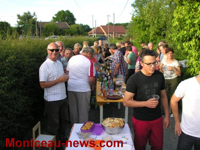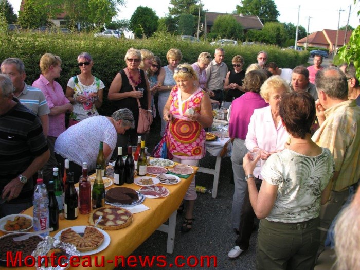 Ce quartier dont la rue Varmancourt mesure un peu plus de 4kms, du passage à niveau jusqu’après le Colombier, en passant par le Montchevrier,….. comprend aussi quelques rues adjacentes dont le chemin de la Forêt où les voisins avaient installé les tables qui ont été vite remplies par les victuailles et les bonnes bouteilles que chacun avait pris soin d’apporter pour le plaisir de tous. Ils étaient une bonne trentaine à faire la fête.