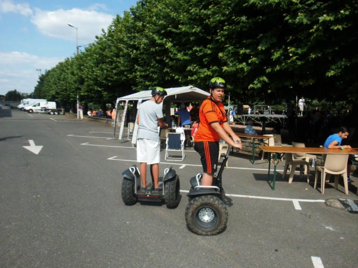 Le programme était relevé et divers, on pouvait ainsi trouver plusieurs structures gonflables disséminées dans le square : Taureau Fou, Joute, Château Fort et Tir à l’élastique. Les plus petits pouvaient également profiter d’un bac à sable géant installé pour l’occasion (grâce à la contribution de Mr Clair qui avait fourni bottes de pailles et bâche nécessaires), attraction qui a particulièrement ravi les enfants du Multi Accueil. Des jeux de kermesses (pêche aux canards, chamboule tout…) étaient aussi proposés et sur le parking chacun pouvait venir découvrir la conduite de gyropodes, engins à deux roues ayant eux aussi connus un grand succès.
