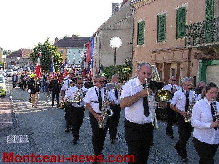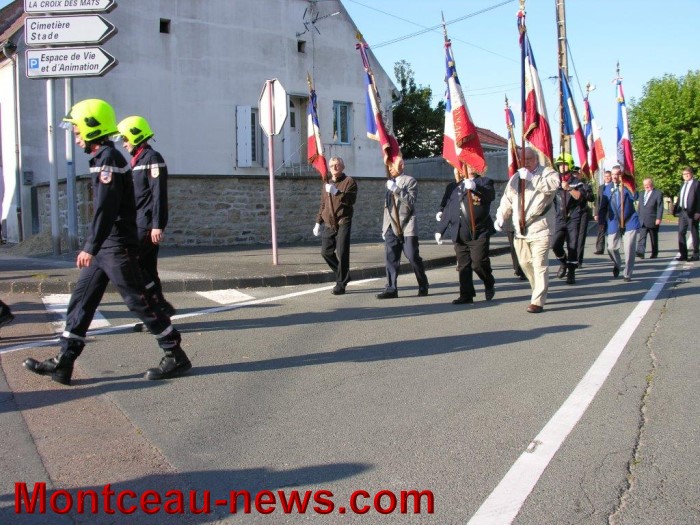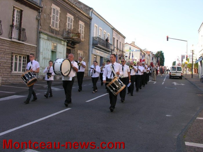 Le défilé mis en place sur le parking de la Mairie s’est rendu en bon ordre par l’artère principale de la ville jusqu’au monument aux morts, avec en tête, une magnifique jeep de 1943, restaurée, mise à disposition pour l’évènement et conduite par un passionné de véhicules anciens, Monsieur Paul Pardon, avec à son bord, MM. Bobin et joly. Suivaient, les musiciens des fanfares municipale et des verreries, les Porte-Drapeaux, les Sapeurs Pompiers , les personnalités et les participants à la commémoration.
