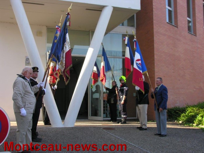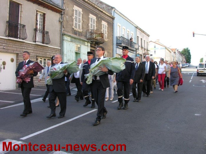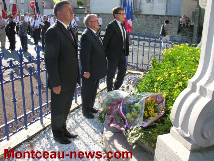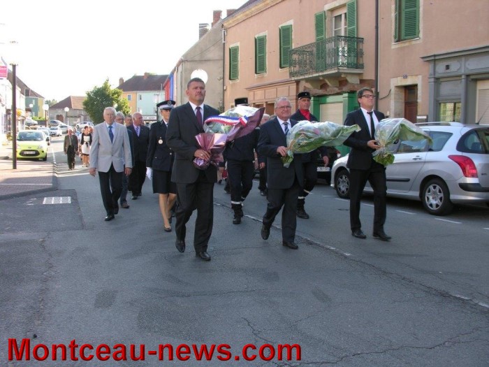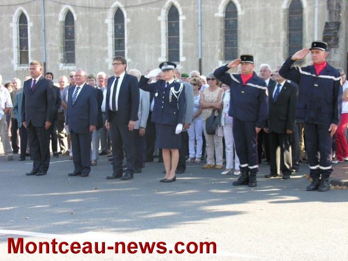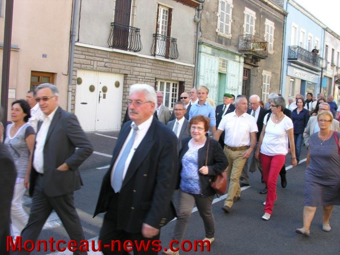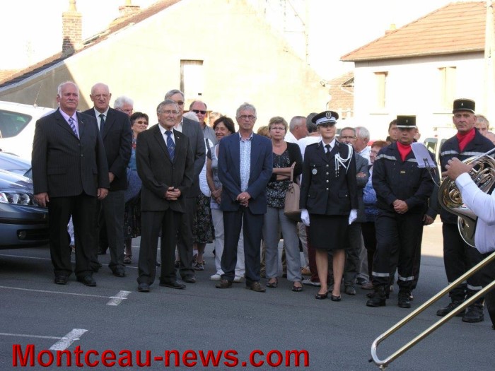 Beaucoup de monde à cette commémoration du 70ème anniversaire de la libération de Blanzy, des habitants, des représentants d’associations locales, des représentants d’associations d’Anciens Combattants et de Résistants, de nombreux membres du Conseil Municipal, les Porte-drapeaux, et de nombreuses personnalités dont :